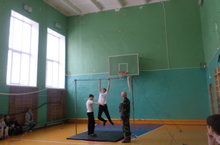 Учащиеся готовятся сдавать ГТО. На дополнительных занятиях по физической культуре укрепляют навыки по подтягиванию, отжимании, сгибанию туловища и прыжку с места.