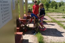 Третий день был насыщенный: возложили цветы у памятника погибшим воинам Великой Отечественной войны, нарисовали рисунки ко Дню скорби и памяти, работали на участке.