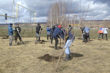 Агач утырту көне уңаеннан һәйкәл янындагы корыган агачларны яңалары белән алмаштырдылар.