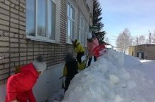 Мәктәп кырларын (отмоска школы) кардан арындыру эшендә укучылар бик тырышып эшлиләр. Чөнки быел кар бик күп, көннәр көндез җылы тора, кар тиз эреп мәктәп подвалына су тошергә мөмкин. Мәктәп янын тәртиптә тоту һәркемгә кирәк.