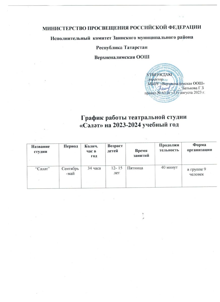 График работы школьного театра "СӘЛӘТ" на 2025-2026 учебный год