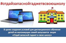 В рамках организации дистанционной формы обучения Министерством образования и науки Республики Татарстан инициирована благотворительная акция для оказания помощи детям из малоимущих семей в обеспечении средствами компьютерной техники и гаджетами (#отдайзапаснойгаджетвсвоюшколу).