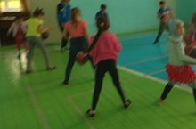 На линии старта первый берет удобным образом 3 мяча (футбольный, волейбольный и баскетбольный). По сигналу бежит с ними до поворотного флажка и складывает возле него мячи. Назад он возвращается пустой. Следующий участник бежит пустым до лежащих мячей, поднимет их, возвращается с ними назад к команде и, не добегая 1м, кладет их на пол.
