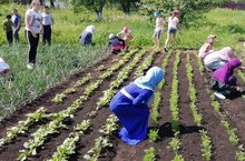 Лагерь работает с 8.30 до 14.30. Со всего села ребятишки с утра спешат к школе: кто пешком, кто на велосипеде.