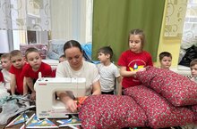 В продолжение благородной инициативы, педагоги Закарьянова О.И. и Котелова В.Н. вместе с воспитанниками подготовительной и подготовительной логопедической "А" групп развернули настоящую мастерскую по созданию "Добрых подушек солдатам".
