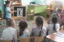 Дети внимательно слушали интересный рассказ про животных, которые пробуждаются после долгой зимней спячки, в том числе и медведь.Узнали много интересного, чем они питаются, где обитают, как пробуждаются после спячки. Воодушевленные рассказом сделали аппликацию ( в нетрадиционной форме )" Бурый мишка" под руководством воспитателя Зайнуллиной С.Г.