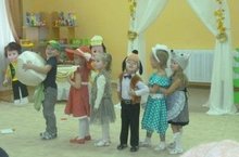 Сегодня, в музыкальном зале дети группы "Бусинки" показали сказку "Репка" на новый лад. Согласно "новой" сказке характер персонажей совсем другой: бабка занята домашним хозяйством, внучка сидит за компьютером и телефоном, Жучка и кошка бегают по чужим дворам, а мышка занята чтением. Но в итоге всё равно все собрались и помогли Деду вытащить репу.